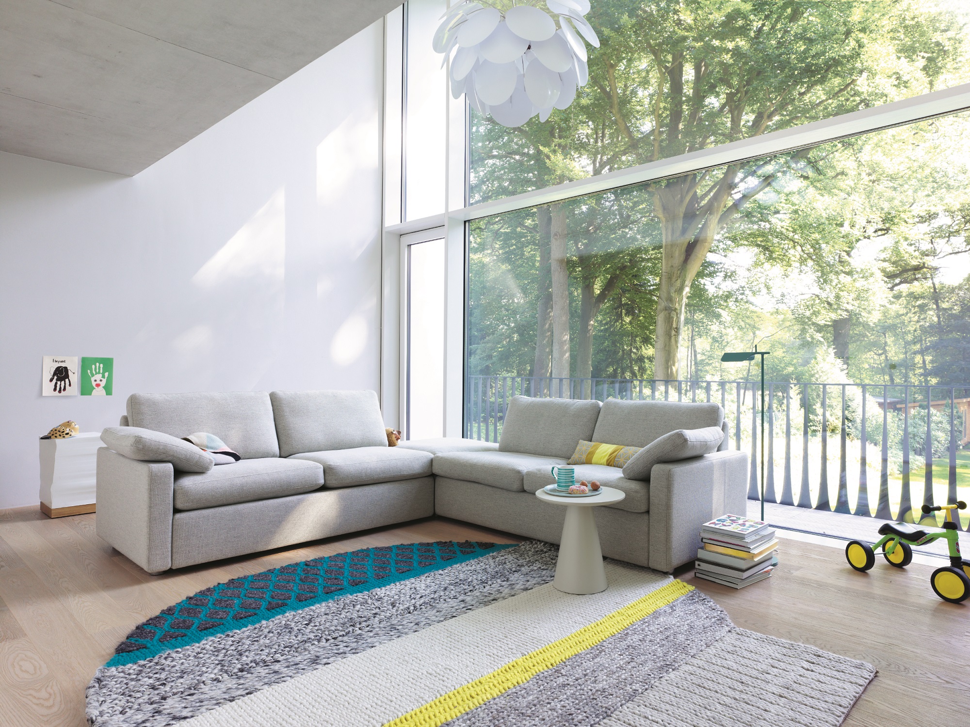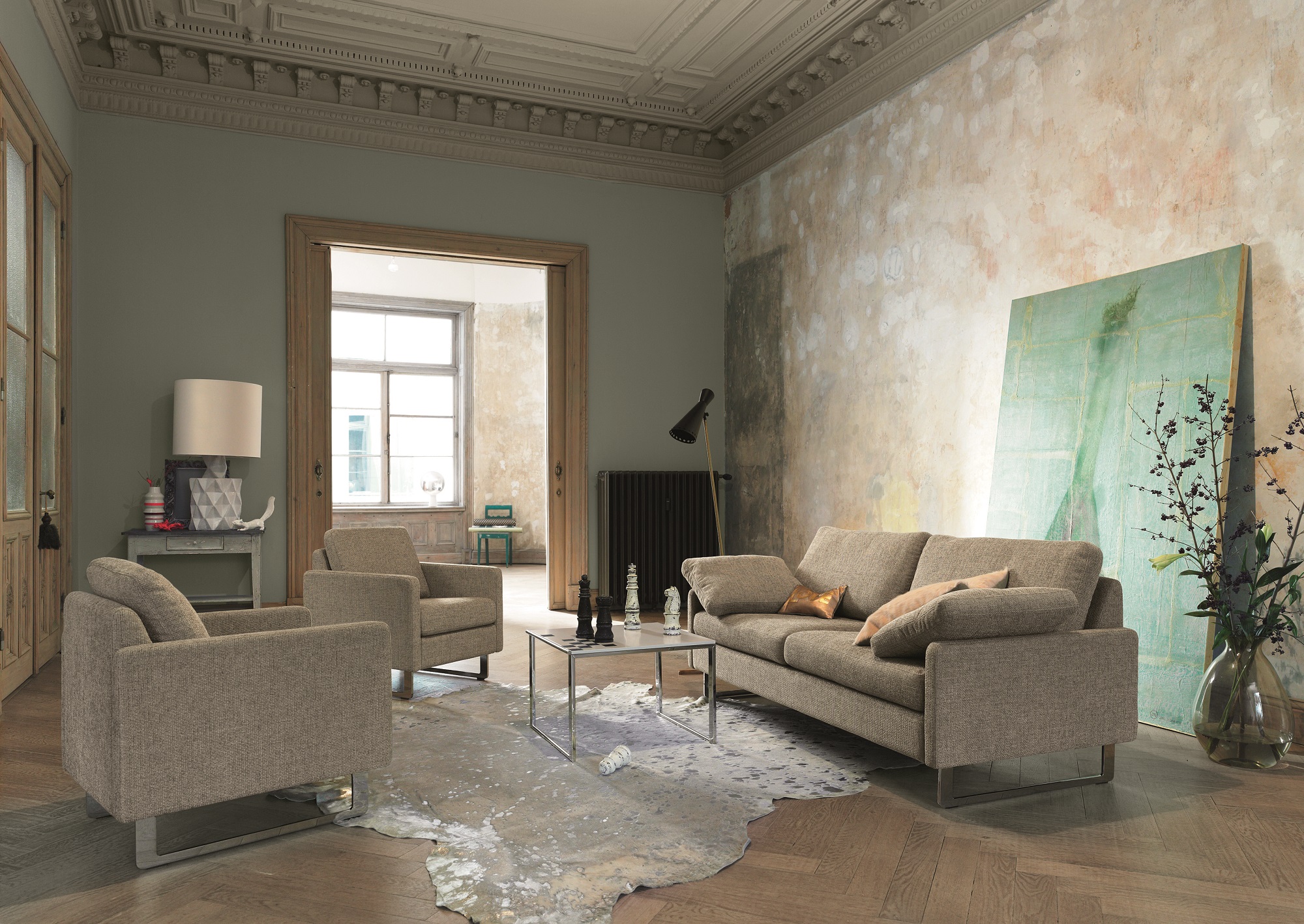 Durch die Flexibilität im Umbau und die einfache Gestaltung wird dem Sofa ein Hauch klassischer Moderne verliehen. Neben Sofas, Sesseln und Teppichen entwirft COR auch Tische, Stühle und Liegen.