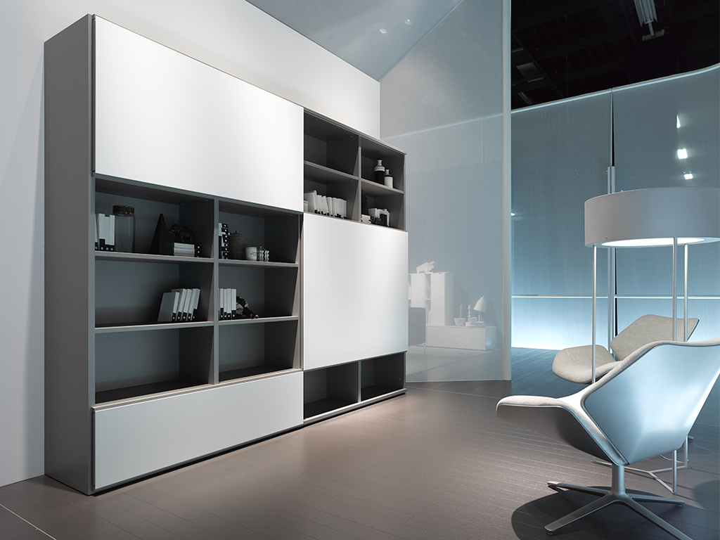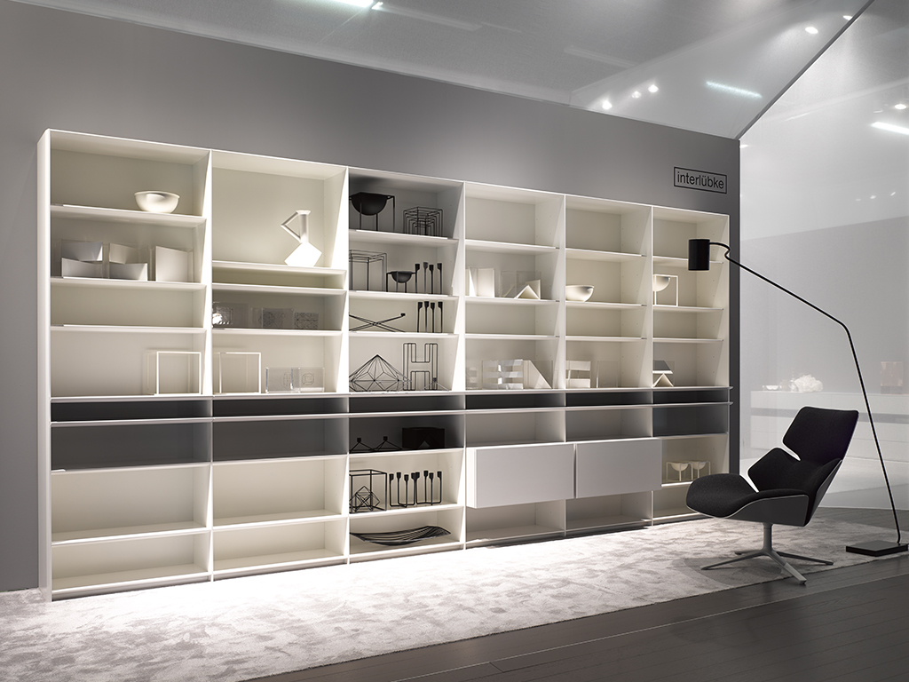 Die Designer Gino Carollo und René Chiba entwickelten das Regal bookless, welches italienische Eleganz mit deutscher Präzision verbindet. Dieser kann als Inspiration, Raumteiler oder als Beleuchtungskomponente verwendet werden.