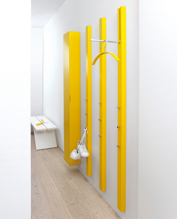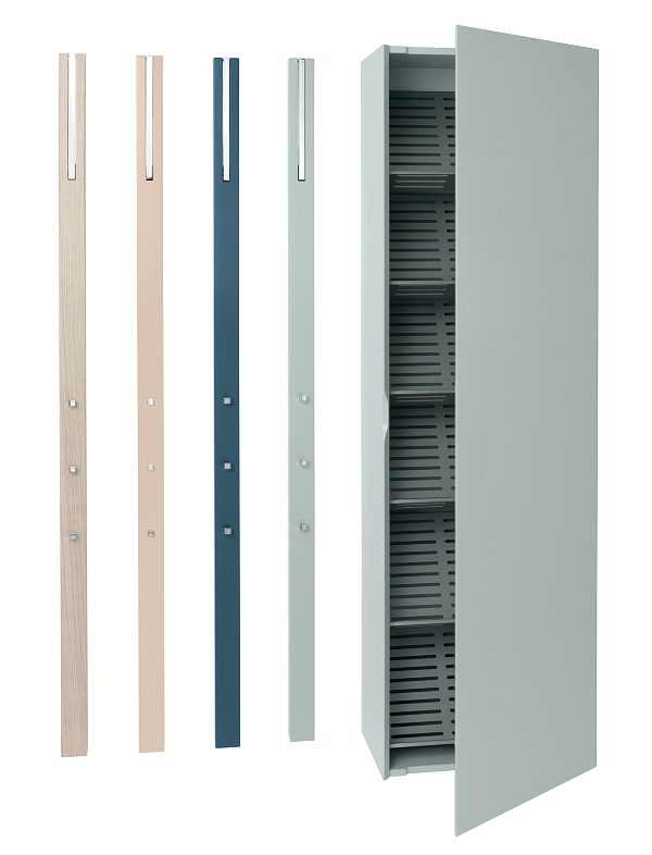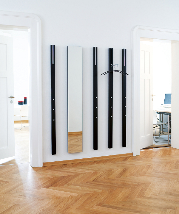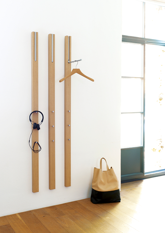 Der Möbelhersteller arbeitet mit internationalen Designern wie Axel Bjurström zusammen, dessen Kreationen einer klaren und schlichten Linie folgen, wie die Wandgarderobe Shelf zeigt.